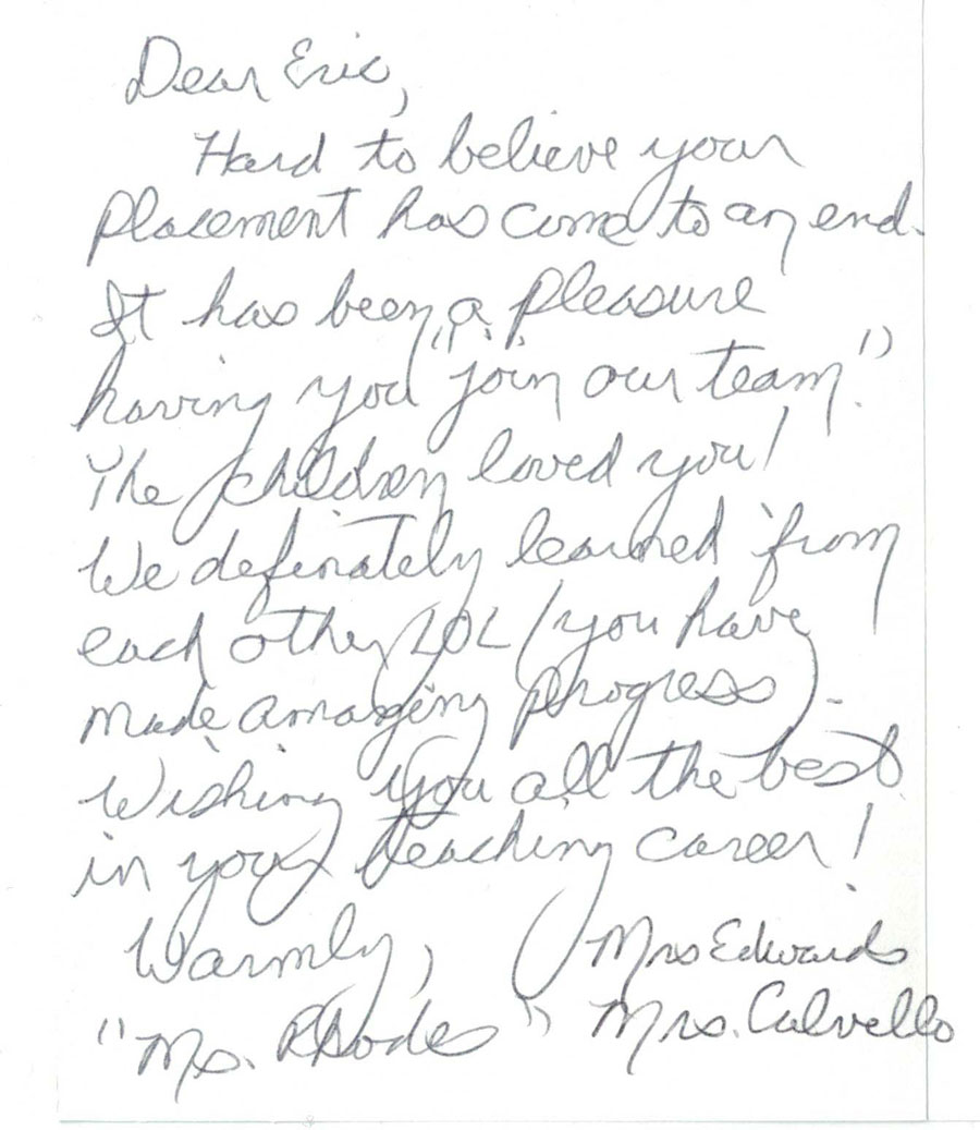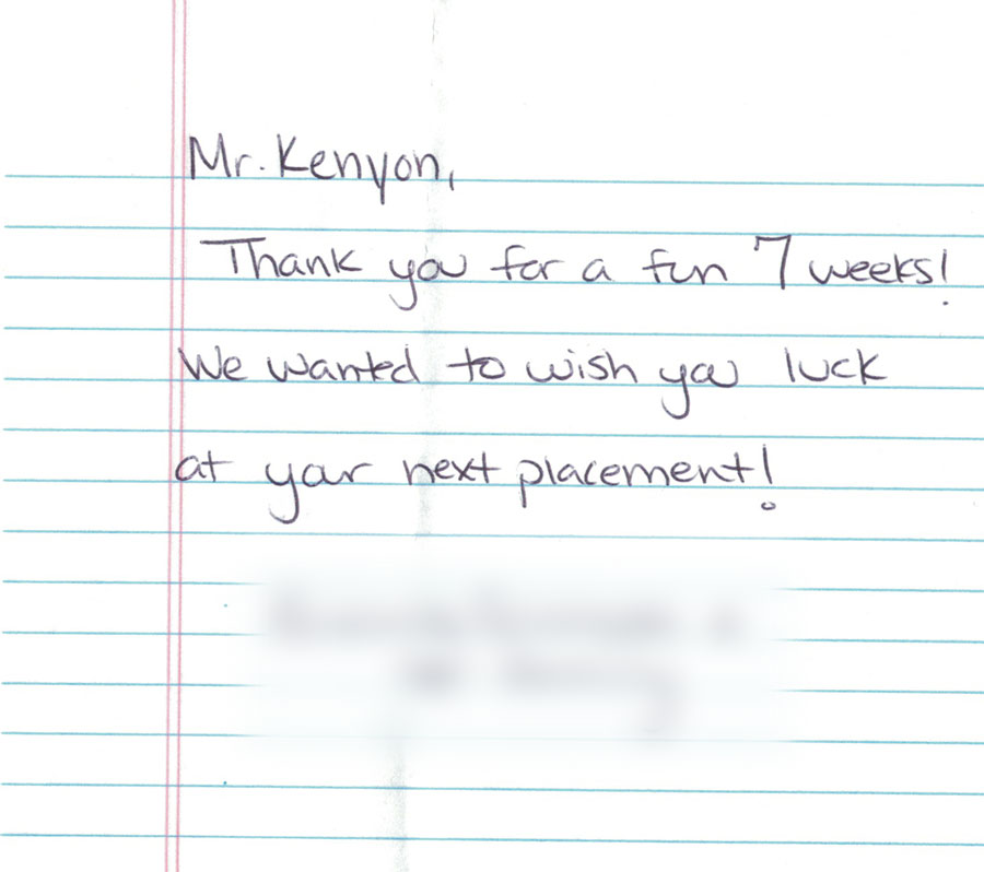 It was an absolute pleasure getting to know the students and cooperating teachers during my teaching placements! The experience I gained was invaluable!